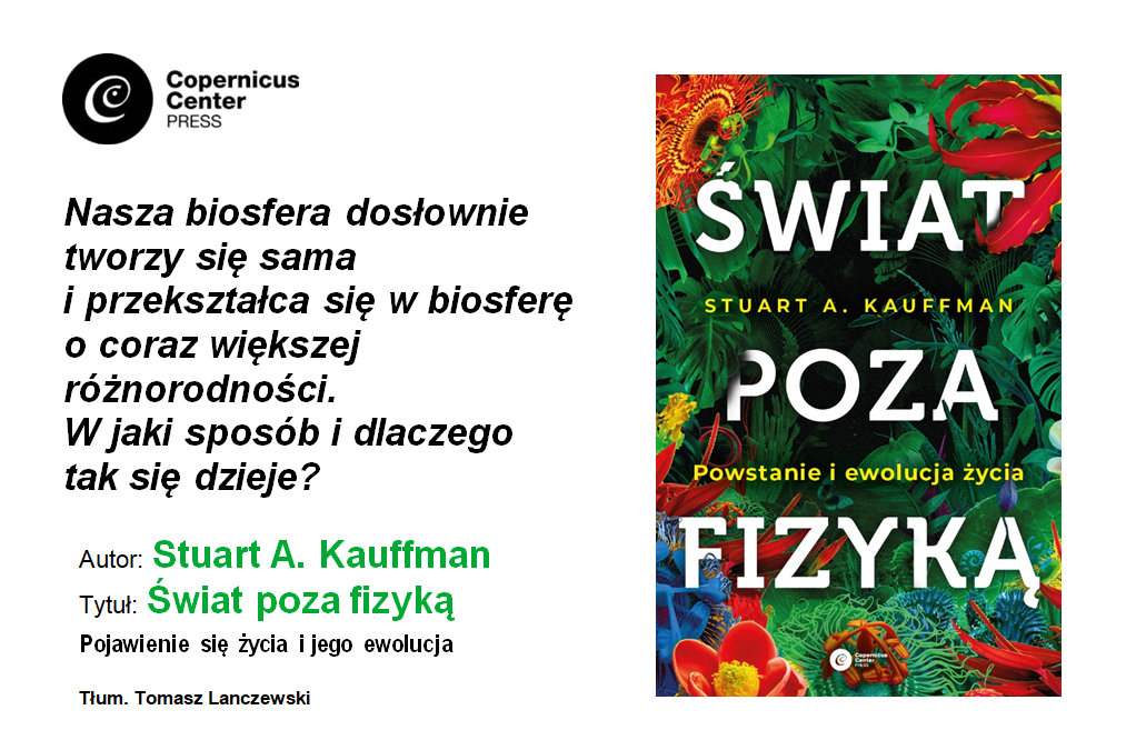 Wraz z Wydatwnictwem Copernicus Center Press przygotowaliśmy dla Was konkurs. Możecie wygrać egzemplarz książki Świat poza fizyką. Powstanie i ewolucja życia Stuarta A. Kauffmana, która ukazała się nakładem Wydawnictwa Copernicus Center Press.