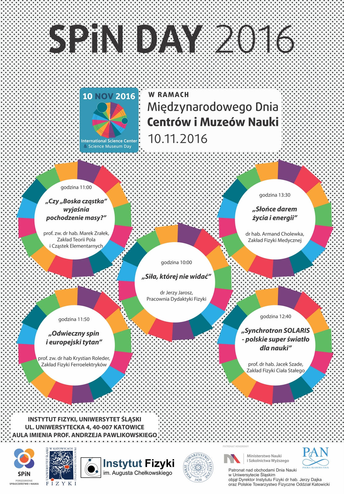 Organizatorzy zapraszają młodzież szkół ponadgimnazjalnych, studentów, doktorantów, nauczycieli, pracowników nauki i wszystkich zainteresowanych na wykłady, które zostaną wygłoszone przez pracowników Instytutu Fizyki Uniwersytetu Śląskiego. Wykłady odbędą się 10 listopada 2016 roku w sali audytoryjnej im. Andrzeja Pawlikowskiego w Instytucie Fizyki UŚ przy ul. Uniwersyteckiej 4 w Katowicach.